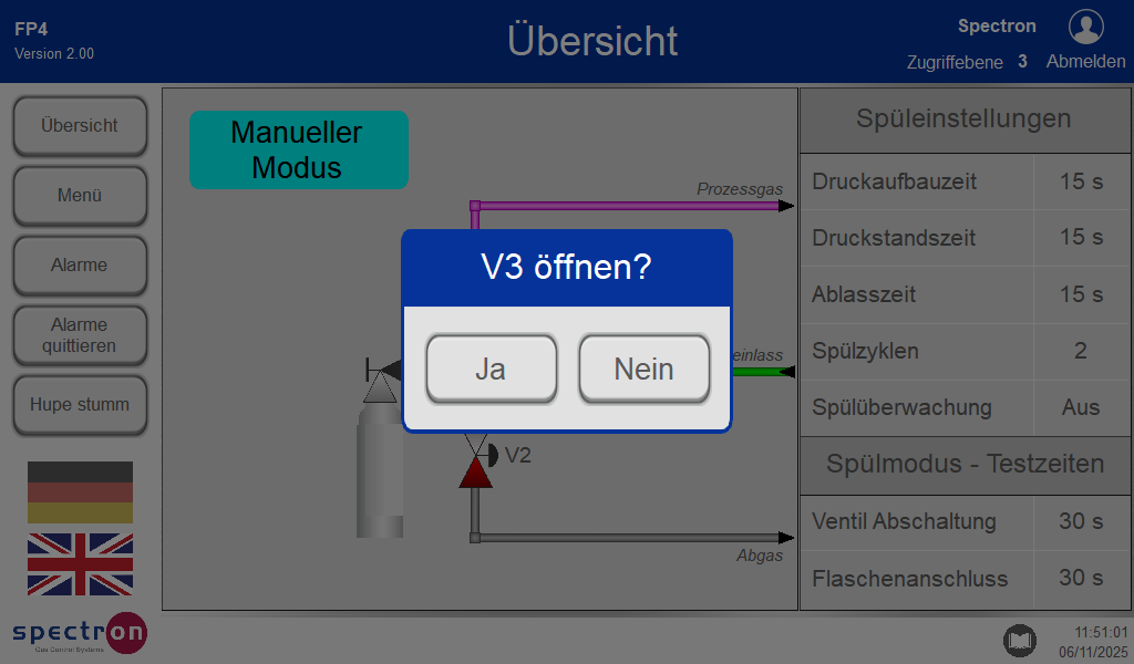 Wenn Sie „JA“ wählen, wird das Ventil geöffnet.